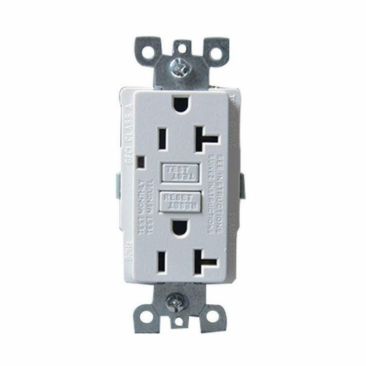 20 Amp Receptacle - GFCI Outlet - White - Wall Plate Included
