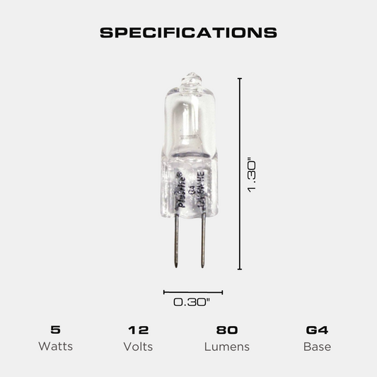 Plusrite 3300 - 5 Watt - T3 G4 Base - Halogen - Clear - 2,000 Life Hours - 80 Lumens - 12 Volt