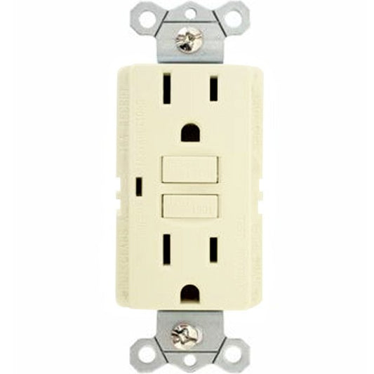 15 Amp Receptacle - GFCI Outlet - Almond - Wall Plate Included