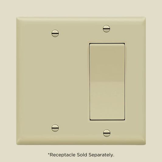 2-gang Combination Wall Plate, One Blank, One Duplex, Ivory