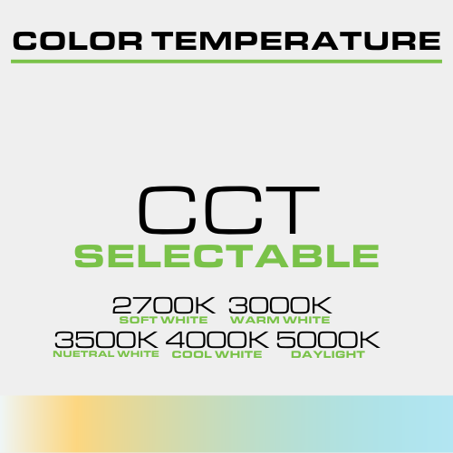 | Color Temperature: | 2700K | 3000K | 3500K | 4000K | 5000K |