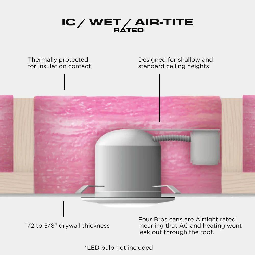 6 Inch Shallow Remodel LED Recessed Housing, IC Rated, Airtight 4 Pack